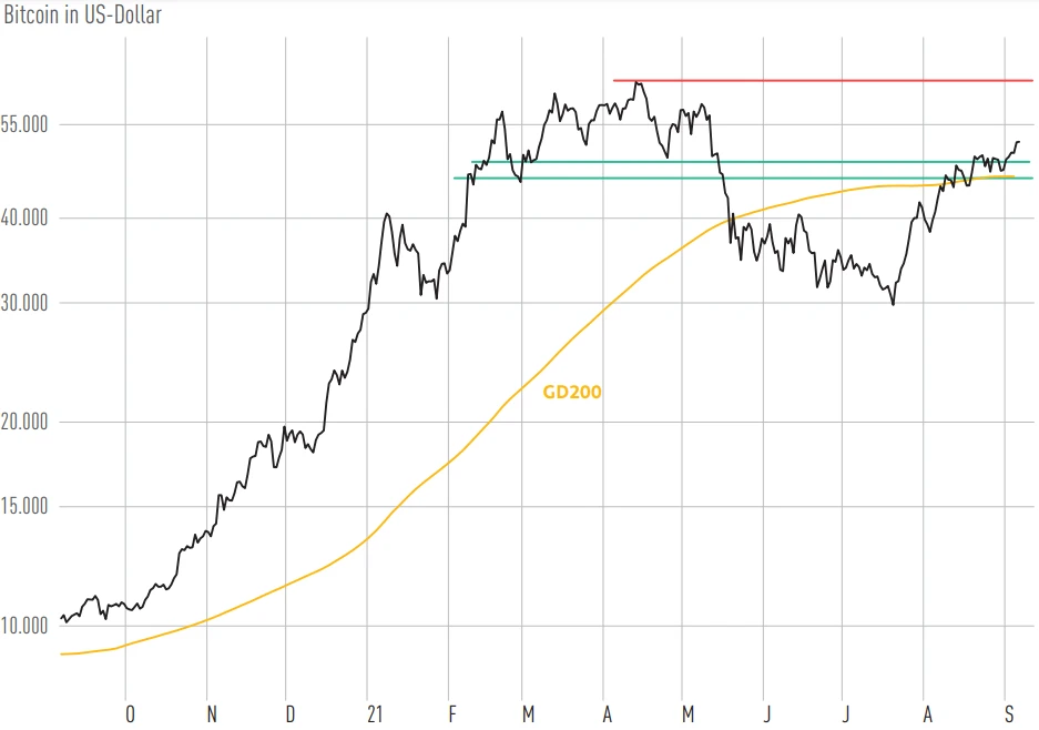 Der Bitcoin hat am Wochenende die Marke von 50.000 Dollar zurückerobert und inzwischen klar hinter sich lassen können. Das ist nicht nur aus psychologischer Sicht ein wichtiges Signal, sondern auch aus charttechnischer.
