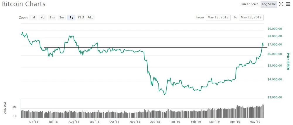 Damit haben wohl die wenigstens gerechnet: Der Bitcoin durchbricht ohne große Mühe die Widerstandszone bei 6.300 US-Dollar nach oben und notiert aktuell über 7.000 US-Dollar. Das Plus der Kryptowährung seit Jahresanfang beträgt damit rund 85 Prozent!