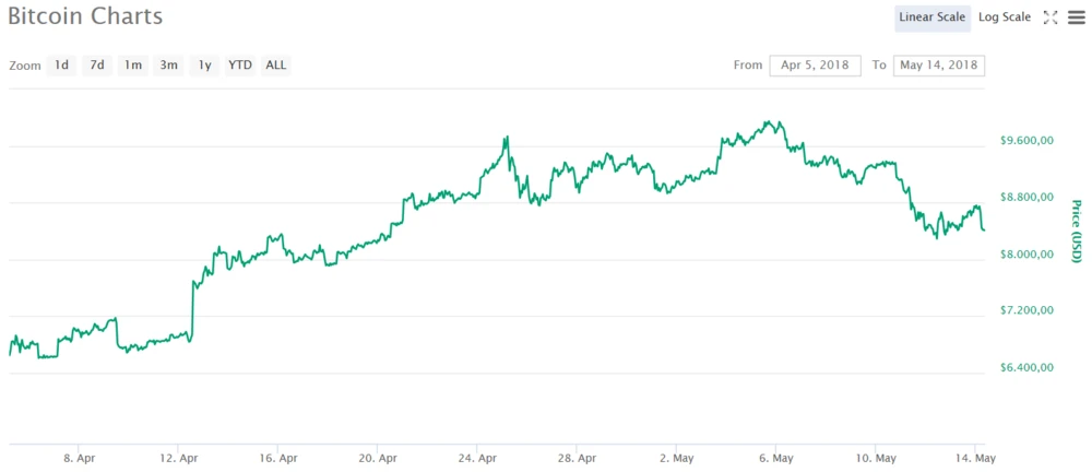 Nachdem sich der Bitcoin vom April-Tief nahe der 6.000 US-Dollar wieder erholt hatte und sogar an der 10.000-Dollar-Marke kratzte, ging es seit Freitag wieder bergab. Schlechte Nachrichten aus Korea belasten.