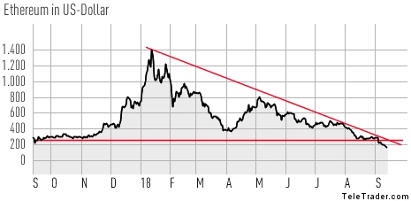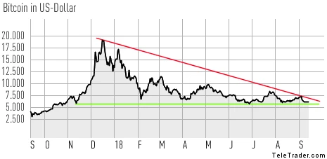 Im Vergleich dazu kann sich der Bitcoin mit einem Abschlag von 0,5 Prozent noch recht stabil halten, die Marke von 6.300 Dollar wurde im Zuge dessen aber dennoch unterschritten. Das ist zunächst aber kein Beinbruch, denn auf der Unterseite liegt die nächste wichtige Chartmarke im Bereich von 6.000 Dollar.