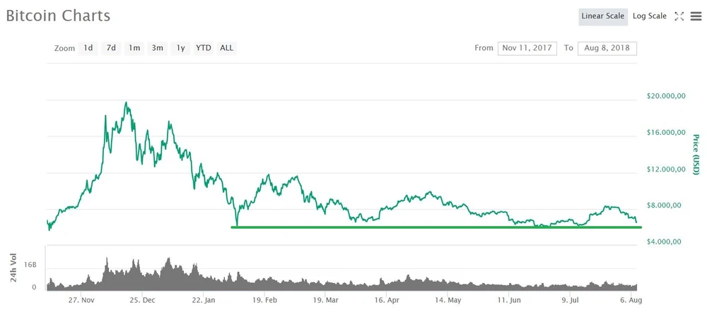 Der Kampf um die 7.000-Dollar-Marke ist verloren. In der Nacht rutschte der Bitcoin deutlich darunter und notierte zwischenzeitlich schon unter 6.500 US-Dollar.