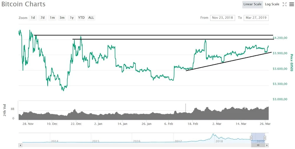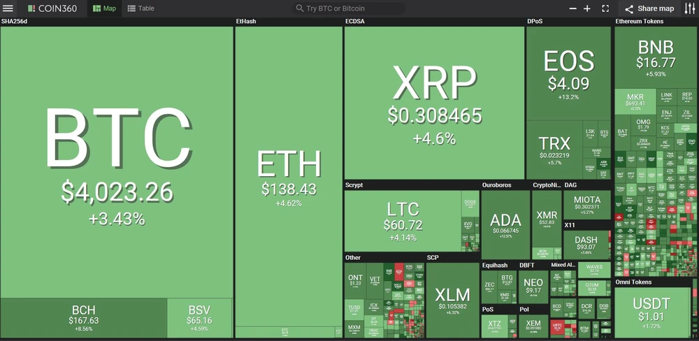 Zur Wochenmitte nimmt der Krypto-Markt wieder ordentlich Fahrt auf. Nachdem der Kurs am Montag zeitweise knapp unter der Marke von 4.000 US-Dollar notierte, liegt er heute mit einem Plus von rund drei Prozent bei 4.070 US-Dollar wieder deutlich darüber.