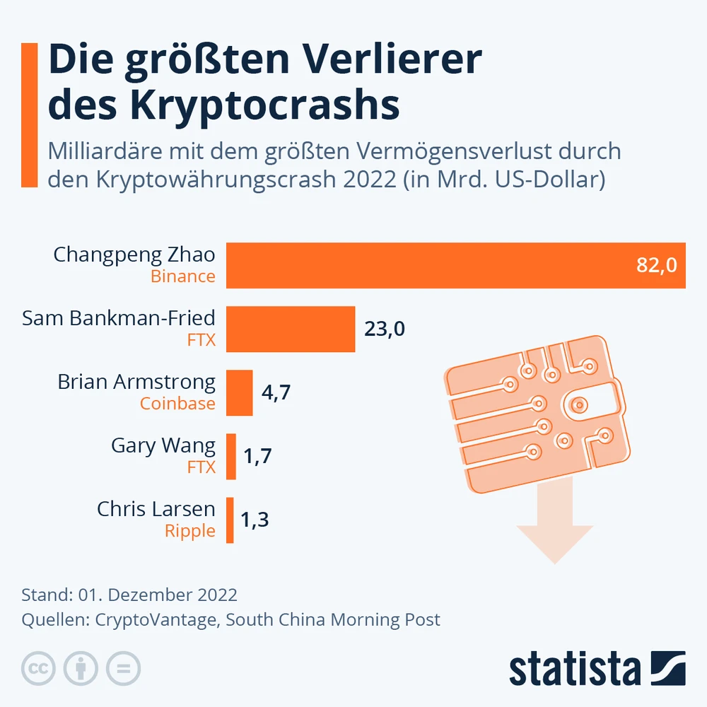 Der Absturz der Kryptowährungen im ablaufenden Jahr ist schmerzvoll für viele Privatanleger. Aber der Krypto-Crash hat Milliardären wie FTX-Chef Sam Bankman-Fried und Coinbase-Gründer Brian Armstrong wirklich heftige Verluste beschert. Den Chef der größten Kryptobörse hat's am stärksten getroffen. DER AKTIONÄR zeigt die größten Verlierer des Krypto-Crash.