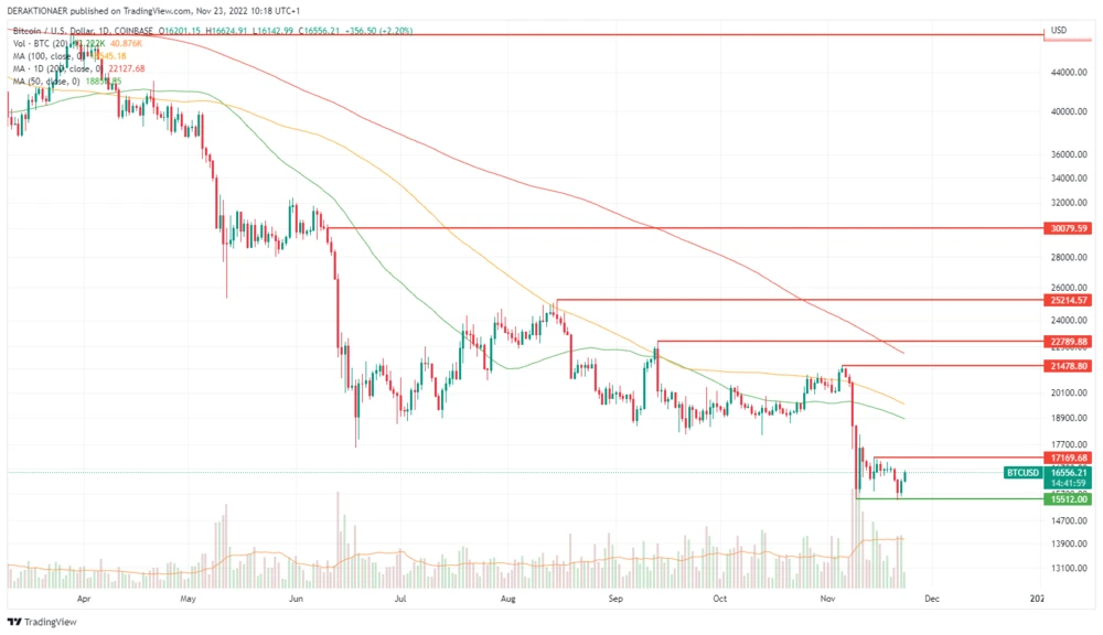 Ein erster Lichtblick zeichnet sich am Kryptomarkt ab. Anleger sollten aber weiterhin vorsichtig agieren, der Abwärtsdruck ist weiterhin hoch und die Situation rund um die FTX-Pleite sowie möglicher Ansteckungsgefahr auf weitere Unternehmen hoch. Vorerst sollte hier Ruhe bewahrt und an der Seitenlinie gewartet werden.
