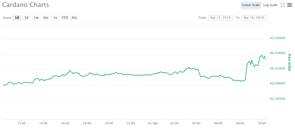 Auch bei Cardano sorgte ein neues Listing für Auftrieb. Als vor gut zwei Stunden die Krypto-Börse Huobi die Aufnahme von Cardano verkündete, schoss der Kurs innerhalb von zehn Minuten um über zehn Prozent nach oben.