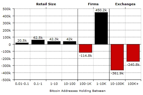 Abseits technischer Indikatoren stellt sich die Frage, woher die neuerlichen Mittelzuflüsse in den Kryptos überhaupt kommen. Hierzu hat das Analysehaus Diar eine schöne Grafik erstellt. Sie zeigt, welche Adressen zwischen August 2018 und Mai 2019 als Netto-Käufer oder Verkäufer aufgetreten sind. Die Erkenntnis: Es sind vor allem größere Firmenadressen (institutionelle Investoren), die den Bitcoin in den letzten Monaten eingesammelt haben. Und die sind meistens mittel- bis langfristig unterwegs. Die Privaten folgen in der Regel hingegen mit etwas Verzug – und springen als letzte auf Trends auf. Die größten Abgeber stellten zuletzt die Kryptobörsen dar.