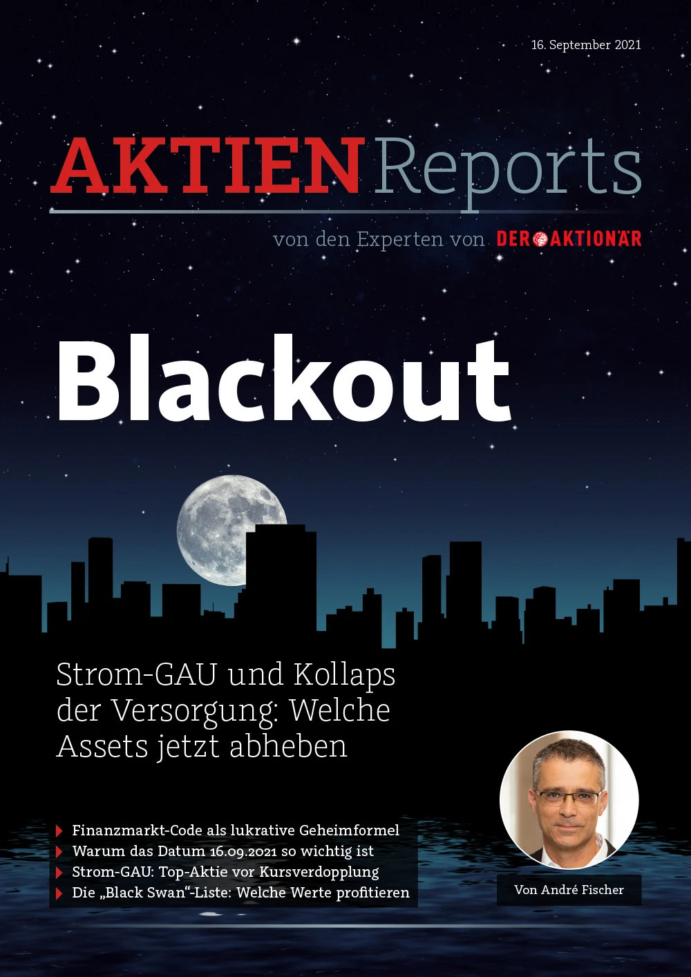André Fischer erklärt in seinem neuen Aktienreport „Blackout“, welcher wachstumsstarke Ökostromwert sich angesichts der absehbaren Verwerfungen demnächst im Kurs verdoppeln sollte. Mit enthalten in dem Aktienreport ist eine „Black Swan“-Liste, die vier weitere Anti-Strom-GAU-Werte enthält. Parallel hierzu geht Fischer kurz auf eine geheime Zahlenarithmetik ein, welche für die nahe Zukunft in Bezug auf die globalen Kapitalmärkte konkrete Ausstiegs- und Einstiegssignale vorgibt. Mehr zu diesen Themen lesen Sie jetzt im 14-seitigen Aktienreport „Blackout“.