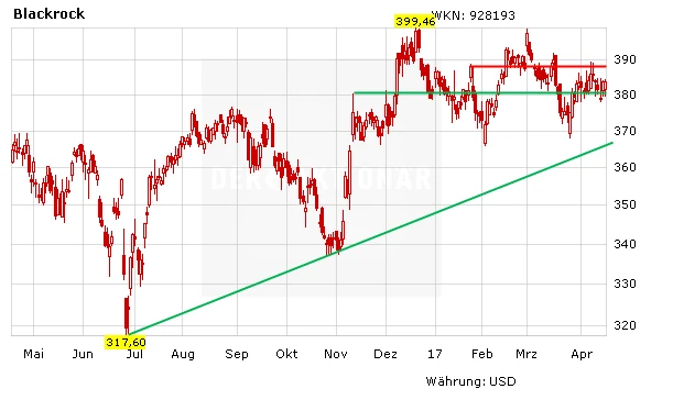 Das KGV liegt mit 18 für das laufende Jahr über dem Branchendurchschnitt von 15. Allerdings rechtfertigen die Marktposition und die Wachstumsmöglichkeiten von Blackrock einen Aufschlag. Aktionären winkt zudem eine Dividendenrendite von 2,4 Prozent. DER AKTIONÄR rät weiterhin zum Kauf der Aktie und sieht ein Kursziel von 450,00 Euro. Ein Stopp sollte bei 290,00 Euro gesetzt werden.