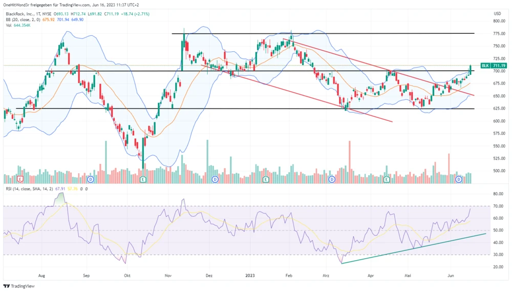 Fundamentalen Rückenwind gab es in den vergangenen Tagen auch. Konkurrent State Street hatte zum Wochenauftakt seine Prognose für das laufende Quartal leicht angehoben. Der Vermögensverwalter rechnet nun mit etwas höheren Einkünften durch Verwaltungsgebühren. Das dürfte angesichts des steigenden Gesamtmarktes und den mit ihm zulegenden Assets under Management auch für BlackRock gelten.