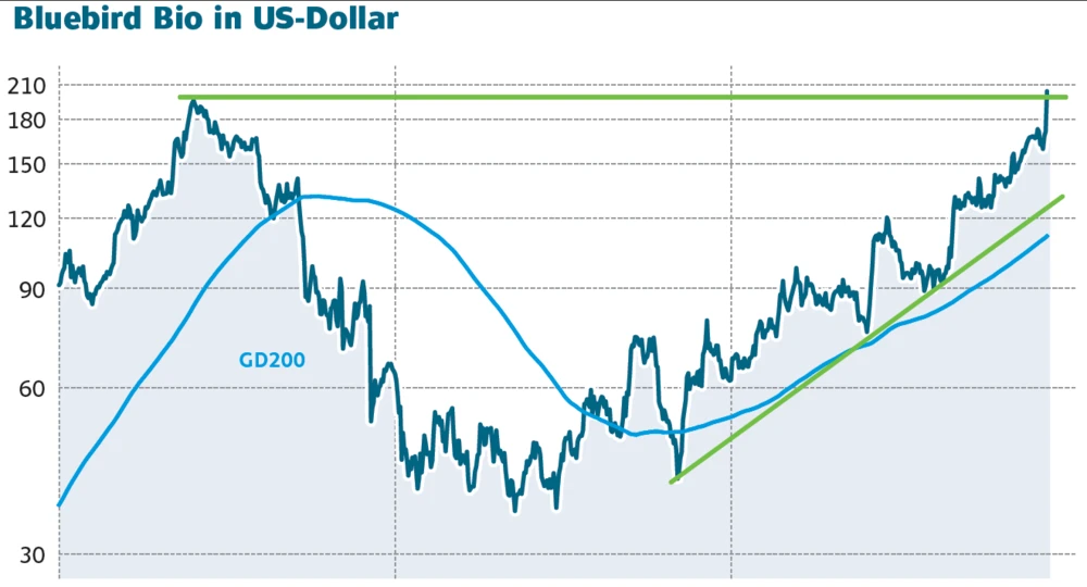 Kurzfristig kann die Kapitalmaßnahme die Bluebird-Bio-Aktie belasten. Dennoch: Der steile Aufwärtstrend dürfte sich aufgrund der starken Nachrichten vom ASH-Meeting weiter nach oben entwickeln. Auch die Wahrscheinlichkeit einer Übernahme ist dadurch enorm gestiegen. Kein Stück aus der Hand geben, größere Rücksetzer bleiben spekulative Einstiegsgelegenheiten mit Stopp.