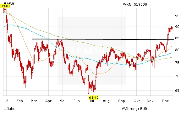 Die Aktie hat sich in den letzten Wochen gut erholt. Die Börse hat Banken sowie die Autotitel wieder entdeckt. Nach dem rasanten Anstieg kann es allerdings durchaus zu einer Konsolidierung kommen. Rücksetzer bieten neue Kaufchancen. Das nächste Etappenziel lautet 95,00 Euro.
