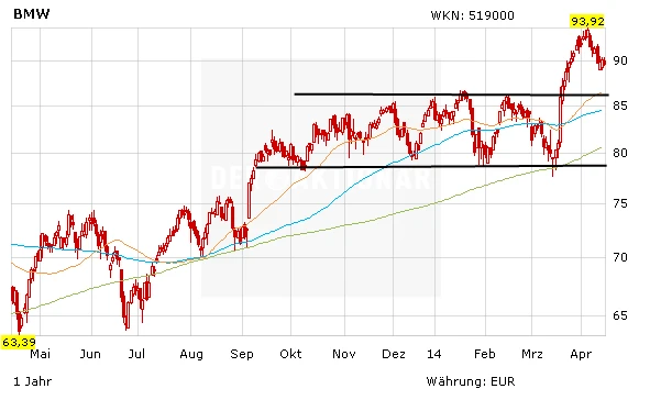 Die BMW-Aktie setzt indes ihre Konsolidierung fort. Das Szenario mit einem Rückgang der BMW-Aktie bis in den Bereich des Ausbruchsniveaus bei 86,50 Euro könnte noch aufgehen. Fazit: BMW ist im Premium-Bereich sehr gut positioniert. Anleger bleiben investiert. Das Kursziel von DER AKTIONÄR bleibt bei 110 Euro.