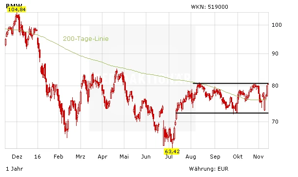 Mit dem Überwinden der 80-Euro-Marke hat sich das Chartbild bei BMW wieder aufgehellt. Der Seitwärtstrend könnte überwunden werden. Ebenfalls positiv: Der Konzern dürfte dank eigener Produktionsanlagen weniger stark unter möglichen Importzöllen in den USA leiden als beispielsweise der Wettbewerber VW. Anleger können auf dem aktuellen Niveau eine erste Position aufbauen.