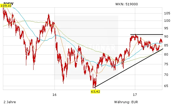 Die Aktie hat sich in den letzten Tagen besser als die der Konkurrenten Daimler oder Volkswagen entwickelt. Es sieht ganz danach aus, als würde die BMW-Aktie Relative Stärke aufbauen. Sowohl das Hebel-Depot als auch das Real-Depot von DER AKTIONÄR setzen auf eine Outperformance der BMW-Aktie in den nächsten Wochen.