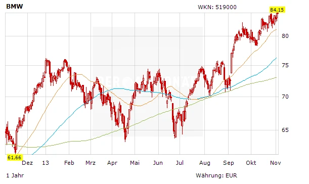Die Experten der National Bank sind weiterhin von den Zukunftsaussichten von BMW überzeugt. In einer aktuellen Studie hat Analyst Manfred Jaisfeld das Kursziel für den Autobauer um zehn auf 85 Euro angehoben. Analyst Christian Ludwig vom Bankhaus Lampe sieht Kursziel für die BMW-Aktie von 90 Euro. Der Experte sieht für den Autohersteller allen voran gute Chancen in China. Hier ist der Premium-Autohersteller zuletzt im Jahresvergleich über 30 Prozent gewachsen¿, sagt Ludwig.
