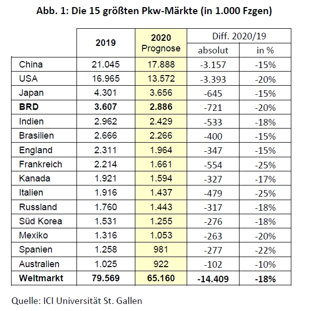 China gilt nicht nur als Leitmarkt für Elektroautos, sondern ist der wichtigste Automarkt der Welt. Das CAR-Institut erwartet für 2020 rund 17,9 Millionen neu verkaufte Autos in China. Zum Vergleich: für die USA erwarten die Experten einen Absatz von rund 13,6 Millionen Autos.