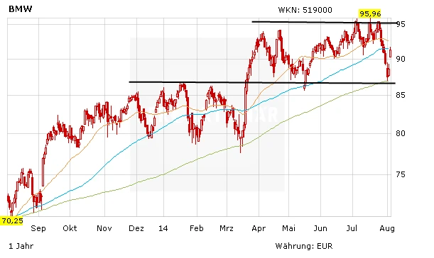 Bereits im Vorfeld empfahl Analyst Philippe Barrier von der französische Großbank Societe Generale (SocGen) die BMW-Aktie zum kauf. Der Experte verwies auf positive Absatztrends, einen stabilen Produktmix sowie eine günstigere Preisentwicklung in den USA und Asien. Auch Frank Schwope von der NordLB bleibt bei seiner positiven Einschätzung für BMW. Die starken Halbjahreszahlen untermauerten den Führungsanspruch des Autobauers im Premiumsegment, so Schwope. Sein Kursziel lautet 102 Euro.
