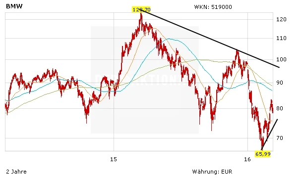 In der Zwischenzeit hat die britische Investmentbank Barclays die Einstufung für BMW auf "Overweight" mit einem Kursziel von 129 Euro belassen. Die Aktie hat sich in den letzten Tagen von den Tiefstständen gelöst. Die Chancen überwiegen. Vor allem was die Elektromobilität betrifft, hat sich BMW bereits sehr gut in Stellung gebracht.