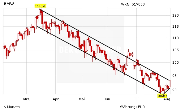Auch die Experten der französische Großbank Societe Generale korrigierten ihr Kursziel von 134 auf 120 Euro nach unten. Die Einstufung beließen die Experten auf „Buy“. BMW habe im ersten Halbjahr schwächer als erwartet abgeschnitten und die Unsicherheiten nähmen zu, schrieb Analyst Philippe Barrier. Das Umfeld in China verschlechtere sich. Er werde deswegen mit Blick auf den operativen Gewinn (EBIT) im Autogeschäft vorsichtiger.