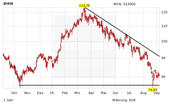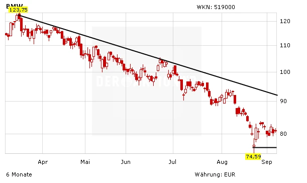 Doch bei aller Zuversicht der Analysten: Charttechnisch gesehen befindet sich die BMW-Aktie weiter im Abwärtstrend - und das seit dem Jahreshoch bei 123,75 Euro. Der Versuch aus diesem auszubrechen - wie beispielsweise Ende Juni - scheiterte. Zumindest die Unterstützung im Bereich von 74 Euro hat gehalten.