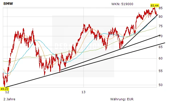 Die BMW-Aktie liegt weiterhin gut im Rennen, jedoch ist die weitere Entwicklung abhängig von der Verfassung des Gesamtmarktes. In den letzten Tagen wurde jede Aufwärtsbewegung des DAX im Keim erstickt. Sofern der Leitindex seine Konsolidierung beendet hat, wird auch die BMW-Aktie wieder anziehen. Die Produktpipeline ist gut gefüllt. Das Kursziel bleibt bei 100 Euro.