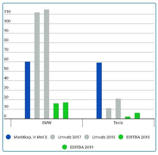 Nur wenn diese Produktionszahlen gelingen, kann Tesla in seine ambitionierte Bewertung hineinwachsen. Das 2018er-Kurs-Umsatz-Verhältnis von BMW liegt bei 0,5, das von Tesla bei 2,9. Entscheidend für den Erfolg des Model 3 ist die noch ausstehende Veröffentlichung von genauen Preisen und der Mut von BMW und Co, mit ähnlich attraktiven Elektroautos zu kontern. BMW will etwa gerüchteweise im September ein Elektroauto auf Basis des 3er vorstellen. Doch kommt es wie erwartet erst 2019 oder 2020 auf den Markt, dann hat Musk zunächst freie Fahrt, den alten Herstellern Marktanteile zu klauen.