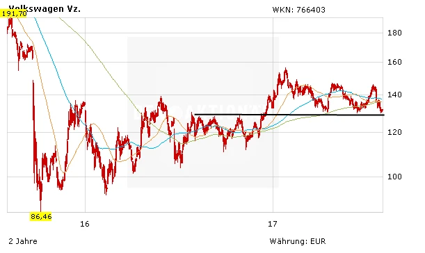Wer einen langen Atem mitbringt und echter Fan von Autowerten ist, der der kann sich die VW-Aktie auf die Watchlist nehmen. Es bleibt dabei: Ein erstes Kauflimit kann bei 127,00 Euro platziert werden. Ein weiteres Abstauberlimit bei 115,00 Euro. Hier liegen aus der Vergangenheit mehrere starke Unterstützungen.