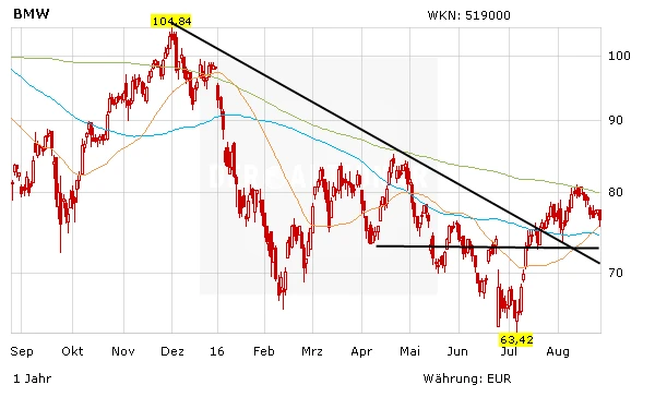 Bislang blieb der BMW-Aktie der Sprung über die wichtige 200-Tage-Linie verwährt. Dennoch zeigt der Trend weiter nach oben. Anleger setzen auf eine Fortsetzung der Erholungsbewegung.