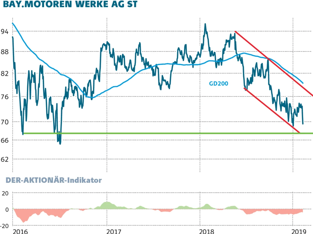 Kein Wunder, dass die BMW-Aktie derzeit an der Börse keine gute Figur abgibt. Zuletzt tauchte das Papier wieder unter die 50-Tage-Linie ab. Die wichtige 200-Tage-Linie ist ohnehin in weiter Ferne. Es ist durchaus möglich, dass die Aktie noch einmal in den Bereich zwischen 67,50 bis 68,80 Euro fallen wird. Hier warten stärkere Unterstützungen aus den Jahren 2013 und 2016. Aktuell dominieren die Risiken nach unten.