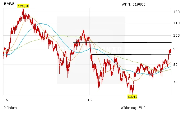 Auch die Deutsche Bank ist bullish für die BMW-Aktie. Das Kursziel lautet 110 Euro. Der Autobauer zeichne sich trotz eines schwächelnden US-Geschäft durch eine stabile Profitabilität aus, schrieb Analyst Tim Rokossa in einer Studie. Zudem sei BMW einer der weltweit am besten geführten Fahrzeughersteller und sehe bei der Erwirtschaftung liquider Mittel weit besser aus als der Konkurrent Daimler. Zudem zeichne sich ab 2018 ein überragender Modellzyklus ab. Der Experte erhöhte seine Gewinnprognosen (EPS) für die Jahre 2017 und 2018 um 21 beziehungsweise 33 Prozent.