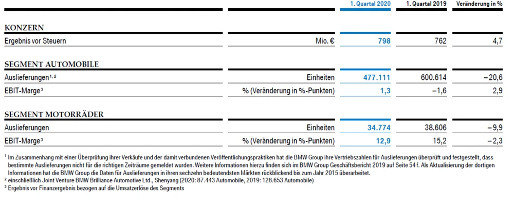 Im ersten Quartal erzielte BMW einen Umsatz von 23,3 Milliarden Euro. Das EBIT lag bei 1,38 Milliarden Euro. Analysten hatten im Vorfeld mit einem Umsatz von 18,6 Milliarden Euro, sowie einem EBIT von 795 Millionen Euro gerechnet. Und dennoch knickt die Aktie ein...