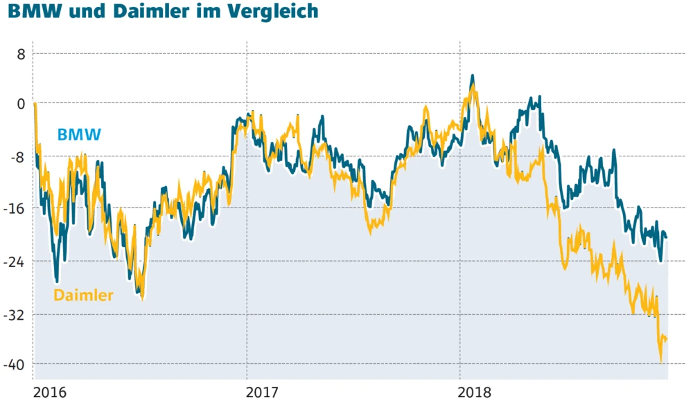 Die BMW-Aktie geriet zuletzt im Oktober gehörig unter Druck und markierte ein Jahrestief bei 69,64 Euro. Die nächste Unterstützung wartet erst beim 5-Jahres-Tief vom Juni 2016 bei 63,38 Euro. Bei Daimler sieht es ebenfalls gar nicht gut aus. Die Daimler-Aktie markierte in diesem November ein neues 5-Jahres-Tief bei 45,07 Euro. Fällt der Kurs unter diese Marke, warten Unterstützungen erst bei Kursen aus dem Jahr 2013 – in einer Range von 38,00 bis 44,00 Euro.