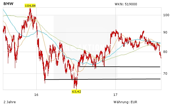 Es bleibt dabei: Die Verkäufe werden in den nächsten Jahren nicht in den Himmel wachsen. Zudem fließen Milliarden in die Entwicklung neuer Elektroautos, was die Gewinne auffressen wird. Für echte Fans von Autoaktien gilt: Ein langer Atem wird nötig sein. Bei BMW kann man mit einem ersten Abstauberlimit bei 74,40 Euro agieren.