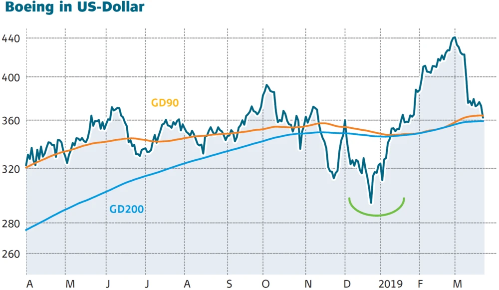 Derweil setzte sich der Abverkauf bei der Boeing-Aktie fort. Am Freitag markierten die Papiere ein neues Tief. Charttechnisch ist es nun wichtig, dass die 200-Tage-Linie bei 359,10 Dollar hält. Sonst droht der Test der breiten Unterstützungszone um die 350 Dollar. Wer investiert ist, bleibt mit einem Stopp bei 270,00 Euro dabei. Neueinsteiger sollten eher den großen Rivalen Airbus ins Auge fassen.