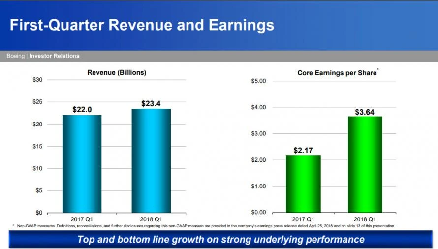Nach dem überraschend starken Jahresstart schraubt Boeing nun seine Ziele für 2018 nach oben. Im laufenden Jahr wird jetzt ein bereinigter Gewinn je Aktie von 14,30 bis 14,50 Dollar angestrebt. Das sind jeweils 50 Cent mehr als zuletzt im Januar angekündigt. Dazu muss der Airbus-Rivale seine Flugzeugproduktion nicht stärker ausweiten als bisher geplant.