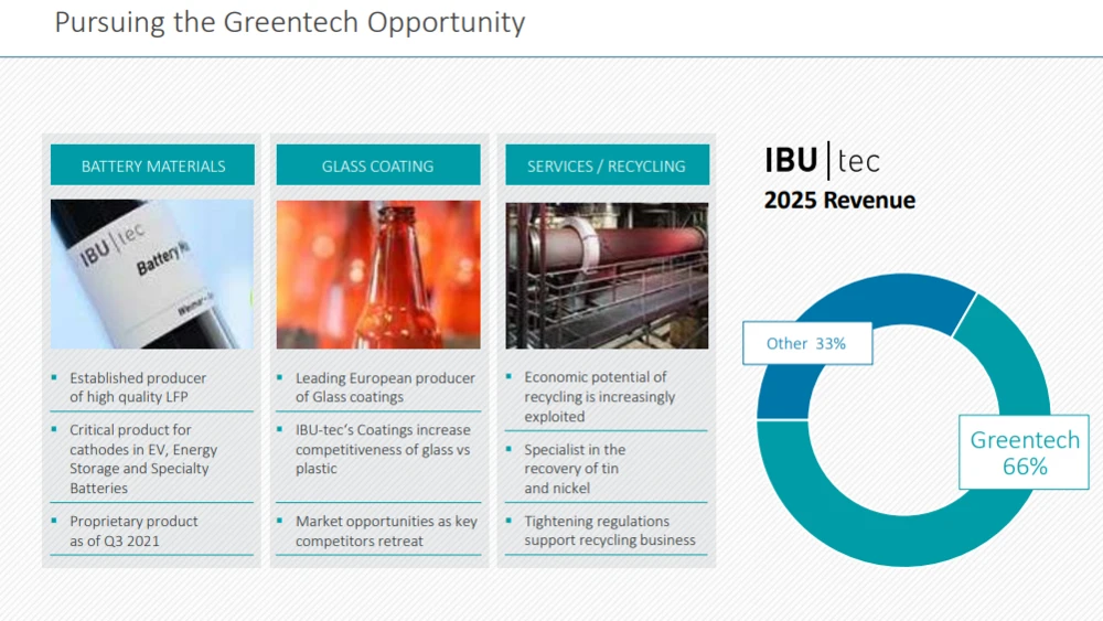 Im Kernsegment Batteriematerialien rechnet der Vorstand in den kommenden Jahren mit mehr als einer Verzehnfachung der Umsätze im Vergleich zu 2019. 2025 sollten bereits bis zu 30 Prozent der Gesamtumsätze in diesem Bereich erwirtschaftet werden. Doch damit nicht genug: IBU-tec hat neben dem E-Mobility-Goldrausch auch in anderen boomenden Märkten eine hervorragende Basis für weiteres Wachstum geschaffen.