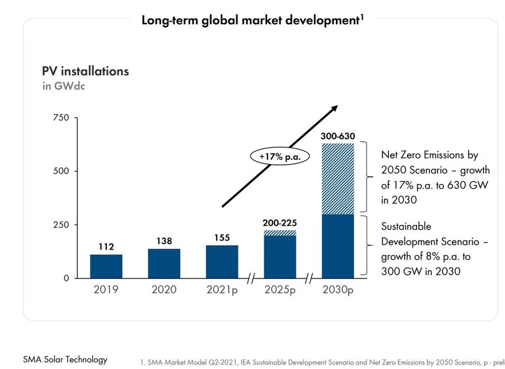 Die Experten von Bloomberg reagieren auf die erfreulichen Zahlen und schreiben, dass SMA Solar auch 2022 von einem „15 bis 30 prozentigen“ Wachstum des Solarsektors profitieren sollte, weil dann die die Nachfrage nach Solar-Invertern einen regelrechten „Boost“ erfahren könnte. Davon würde auch Depot-2030-Aktie Solaredge profitieren. Die Experten von Canaccord haben nun das Kursziel für den Inverter-Hersteller von 280 auf 345 Dollar angehoben.