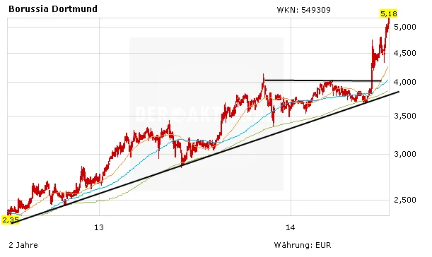 Sportlich sollte der BVB auch in der kommenden Bundesliga-Saison wieder unter den ersten drei landen. Auch ist der Klopp-Truppe in der Zusammenstellung ein großer Coup in der Champions-League zuzutrauen. Trotz des Kurssprungs ist die BVB-Aktie noch immer unterbewertet. Das Kursziel von DER AKTIONÄR von ursprünglich 5,20 Euro wird aufgrund der neuen Deals auf 6,50 Euro angehoben.