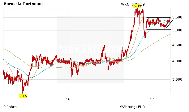Es bleibt dabei: DER AKTIONÄR schließt sich Analyst Christoph Schlienkamp vom Bankhaus Lampe an. Er ist und bleibt für die BVB-Aktie optimistisch. Schlienkamp hält 7,00 Euro für möglich. Nach Ansicht von DER AKTIONÄR spiegelt die aktuelle Börsenbewettung den Wert des Kaders noch nicht ansatzweise wieder. Die Aktie hat zuletzt wieder Fahrt aufgenommen und bleibt nicht nur für echte Fußballfans ein Kauf.