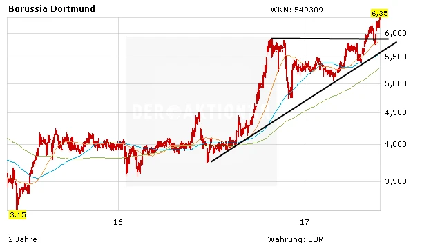 Es gilt nach wie vor. Die Aktie spiegelt den Marktwert der jungen Kicker in keinster Weise wider. Auch in der kommenden Saison können sich die Spieler wieder auf Europa größter Fußballbühne präsentieren. Das wird die Marktwerte weiter klettern lassen. Juventus Turin etwa ist an der Börse 850 Millionen Euro wert. Manchester United gar 2,5 Milliarden Euro. Da hat der BVB mit 540 Millionen Euro sicherlich noch Luft nach oben.