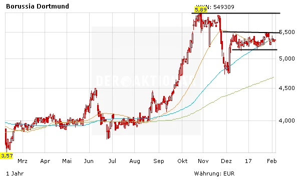 Fakt ist, dass der BVB durch den Sieg über Leipzig wichtige Zähler im Kampf um die wichtige Qualifikation für die Champions League gut machen konnte. Nach wie vor ist die Aktie nach Ansicht von DER AKTIONÄR unterbewertet. Die Marktwerte des noch jungen Spielerkaders werden an der Börse nicht richtig wiedergegeben. Auch in der laufenden Runde der Champions League ist der BVB in der aktuellen Form noch für die eine oder andere Überraschung gut. Ein neues Kaufsignal ergibt sich mit Überwinden des horizontalen Widerstands bei 5,50 Euro. Das Kursziel bleibt 7,50 Euro.