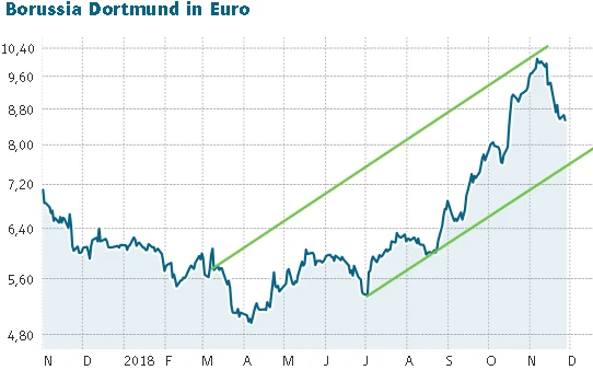 Im Ende Juni abgeschlossenen Geschäftsjahr 2017/18 hatte der BVB einen Rekordumsatz von 536 Millionen Euro erzielt – ein Plus gegenüber dem Vorjahr von 32 Prozent. Allein 222 Millionen Euro spielten dabei Transfers ein. Der Gewinn betrug 28,5 Millionen Euro. Der BVB zahlt deshalb eine Dividende von sechs Cent je Aktie. Heute wird der SDAX-Titel entsprechend ex-Dividende gehandelt.