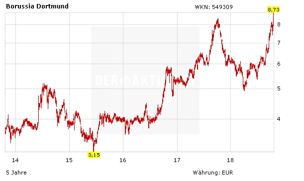 Die BVB-Aktie kletterte am Mittwoch in einem schwachen Marktumfeld auf 8,70 Euro. Damit hat das Papier das alte Hoch aus dem Monat Oktober 2017 bei 8,27 Euro genommen.