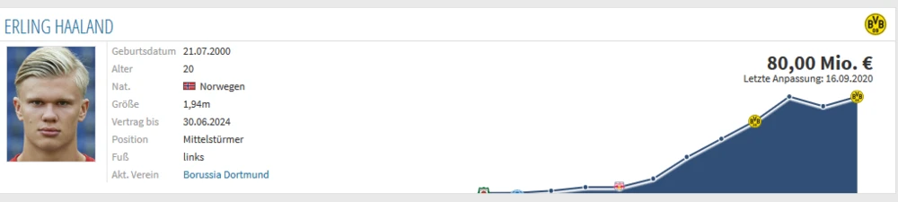 Zu Erinnerung: Sanchos Marktwert lag im Juli 2018 noch bei 25 Millionen Euro, Erling Haaland würde im Dezember 2019 für 20 Millionen Euro aus Salzburg geholt