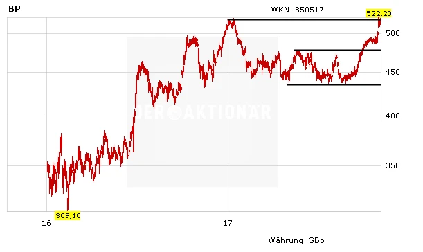 Das BP-Management hat es geschafft, den Konzern nach zwei schweren Nackenschlägen (von denen der erste natürlich selbstverschuldet war) wieder auf Kurs zu bringen. Der Konzern ist wieder hochprofitabel, verfügt wieder über eine solide Bilanz und sollte weiterhin in der Lage sein, die Anteilseigner mit einer satten Dividende von 5,9 Prozent zu erfreuen. Favorit im Sektor bleibt für den AKTIONÄR zwar nach wie vor Shell, doch die günstig bewertete BP-Aktie bleibt eine sehr gute Alternative und als Depotbeimischung geeignet. Der Stopp sollte bei 4,30 Euro belassen werden.