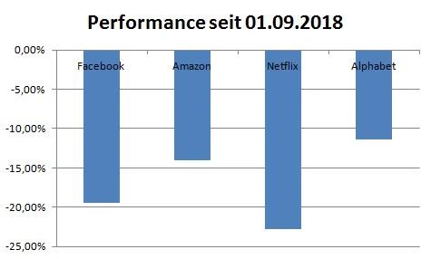 Nach einer kurzen Erholungsphase haben die großen Tech-Werte in den USA am Dienstag wieder massiv abgegeben. Seit Anfang September war dieser negative Trend bereits zu sehen. Jede der FANG-Aktien musste seit dem spürbar nachgeben. Im Gegenzug zeigen die konservativen Werte relative Stärke und konnten entgegen dem schwachen Gesamtmarkt zuletzt deutliche Gewinne einfahren.