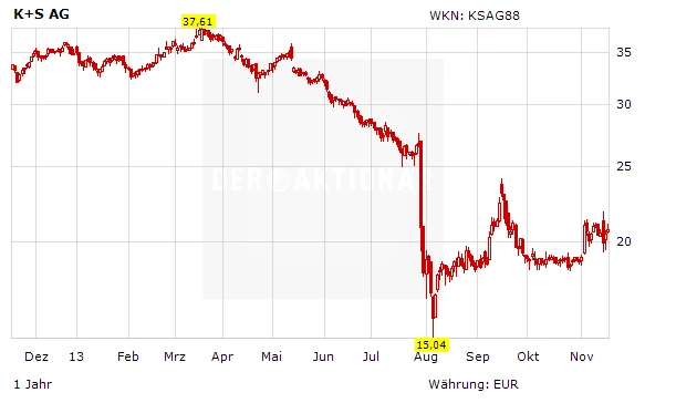 Anfang November hatte bereits Moody´s die Bewertung von K+S auf Ramschniveau gesenkt. Moody´s stuft K+S noch mit „Ba1“. Zumindest hat Moody´s den Ausblick für K+S auf „Stabil“ angehoben. Die Agentur begründete den Schritt damals mit der Unsicherheit über die Preisentwicklung auf dem weltweiten Pottasche-Markt, die K+S dazu zwingen könnte, zusätzliche Schulden aufzunehmen. Dies würde dann zu einer spürbaren Verschlechterung des Finanzprofils des Konzerns führen, sagte die leitende K+S-Analystin von Moody's, Elena Nadtotchi, laut Mitteilung.