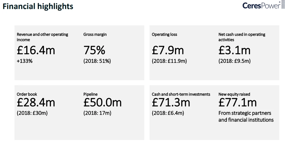Der AKTIONÄR-Hot-Stock Ceres Power hat die Zahlen für das Geschäftsjahr 2018/2019 veröffentlicht. Beim Umsatz steht ein Plus von satten 133 Prozent in den Büchern, der Verlust konnte weiter reduziert werden. Und Ceres Power befindet sich auf einem guten Weg in Richtung schwarze Zahlen – mit starken Partnern an der Seite.
