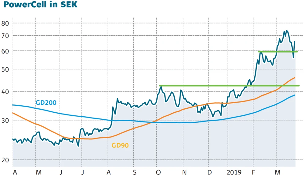 Die PowerCell-Aktie hat nach der fulminanten Rallye kräftig Luft abgelassen. Umso impulsiver fiel jedoch auch wieder die Gegenbewegung aus: Gestern kletterte der AKTIONÄR-Hot-Stock an der Heimatbörse in Stockholm um 17,2 Prozent auf 68,85 Schwedische Kronen nach oben. Für die Aufwärtsbewegung sorgten wilde Gerüchte aus China.