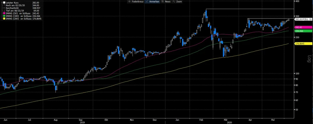 Die PowerCell-Aktie befindet sich in einer starken charttechnischen Verfassung. Gelingt es den Bullen, den Widerstand bei 286,80 Schwedische Kronen aus dem Weg zu räumen, wäre der Weg in Richtung Rekordhoch frei.